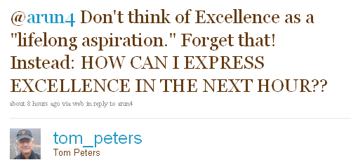 Don’t think of Excellence as a “lifelong aspiration.” Forget that! Instead: HOW CAN I EXPRESS EXCELLENCE IN THE NEXT HOUR??